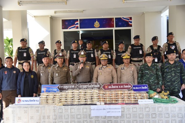 แถลงข่าวการจับกุมเครือข่ายลำเลียงยาบ้าในเขตพื้นที่จังหวัดร้อยเอ็...