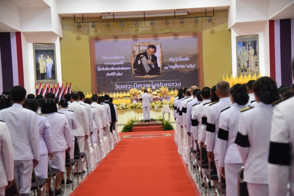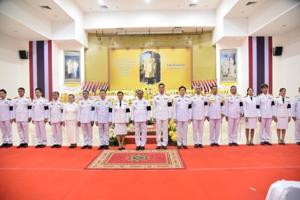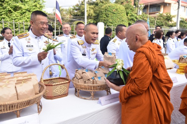 พิธีเจริญพระพุทธมนต์ ทำบุญตักบาตรถวายพระราชกุศล และพิธีวางพานพุ่...